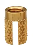 Las inserciones ajustables a presión están roscadas internamente y tienen un diámetro exterior moleteado. Se presionan en un agujero plano con una prensa de árboles.[9]