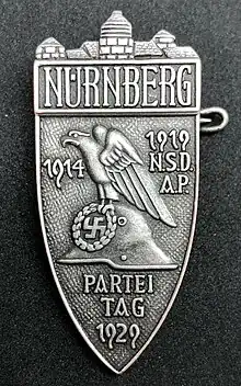 La Insignia de Partido de Núremberg (en alemán: Das Nürnberger Parteiabzeichen von 1929)[1] fue una condecoración política muy venerada del Partido Nazi (NSDAP). Fue la segunda insignia reconocida como un premio nacional del partido.