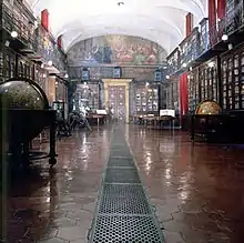 Dentro del Instituto hay una sala, antiguamente el Cenáculo de los Siervos de María, en la que hay dos frontones con frescos del siglo XVII, una biblioteca geográfica y cartográfica con más de doscientos mil volúmenes de tipologías cartográficas y colecciones históricas.