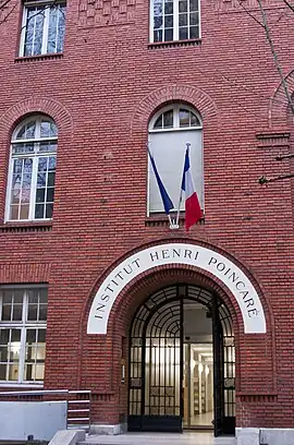 Justo después de la Primera Guerra mundial, los matemáticos Émile Borel en Francia y George Birkhoff en los Estados Unidos persuadieron patrocinadores americanos y franceses (Edmond de Rothschild y el Fundación Rockefeller respectivamente) para financiar el edificio de un centro para conferencias e intercambios internacionales en matemáticas y física teórica. El Instituto fue inaugurado el 17 de noviembre de 1928 y nombrado después en honor al matemático francés Henri Poincaré (1854-1912).