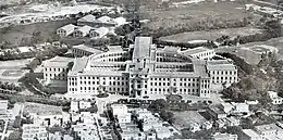 El resultado es un edificio monumental de panoptical con una perpendicular neoclásica extensa de fachada a la capilla y cuatro gran patios con galerías de porticadas para ligarlo con cada uno de los nueve pabellones radiales.