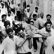 Las manifestaciones populares de principios de junio de 1963, más conocidas en Irán como las manifestaciones del 15 de jordad, fueron protestas contra la detención del ayatolá Jomeini después de que éste diera un discurso de condena contra el régimen de los Pahlavi e Israel.[1] Este discurso lo dio el 3 de junio, día de la Ashura, y dos días después era detenido por la SAVAK. Cuando llegó a Qom la noticia de su detención, la población de esta ciudad reaccionó, y no tardó en producirse nuevas reacciones en otras ciudades como Shiraz, Mashad y Varamin. Manifestantes airados fueron reprimidos por las fuerzas del ejército y por las guardia del rey, y se decretó el toque de queda. El 6 de junio estos enfrentamientos acaban en derramamiento de sangre. Pishva, un pueblo cerca de Varamin, se convierte en un punto de referencia durante estas jornadas de disturbios pues varios cientos de sus habitantes parten hacia Teherán gritando proclamas y consignas. Soldados le impiden el paso cerca de un puente de la vía del ferrocarril, y entre los manifestantes y los soldados armados se produce una confrontación que se salda con cientos de víctimas mortales.[2] Hay quienes consideran que el verdadero inicio de la Revolución islámica del 1978-9 fueron las revueltas del 15 de jordad. El Prólogo de la Constitución de la República islámica de Irán reza lo siguiente: “Las violentas protestas del Imán Jomeini contra el complot americano de la llamada “Revolución Blanca”, que representaba un paso en la constitución de los fundamentos del régimen despótico y del reforzamiento de los vínculos políticos, culturales y económicos de Irán al imperialismo mundial, fue el factor determinante del movimiento unánime de la nación. Posteriormente, la grandiosa y sangrienta revolución de la Nación (Umma) Musulmana en Jordad de 1342, marcó en realidad el punto de partida de este levantamiento majestuoso y extenso, y consolidó la posición central del Imán como líder islámico. A pesar de su exilio en el extranjero, tras su protesta contra la vergonzosa ley de las capitulaciones (inmunidad de los consejeros norteamericanos), persistieron los poderosos lazos entre la Umma y el Imán prosiguiendo dentro de la lucha. La nación musulmana, sobre todo los intelectuales comprometidos y el clero combatiente, continuaron su camino entre el exilio y la prisión, la tortura y las ejecuciones”.[3]