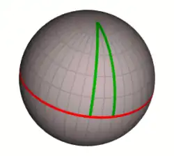 Una superficie esférica como la de la Tierra proporciona un ejemplo sencillo. La ubicación de cualquier punto de la superficie puede ser descrito por dos coordenadas geográficas: latitud y longitud. Sin embargo, a diferencia de las coordenadas cartesianas del plano, las diferencias de coordenadas no son lo mismo que las distancias en la superficie, tal y como se muestra en el diagrama de la derecha: para alguien en el ecuador, moverse hacia el Oeste por 30 grados de longitud (línea magenta) corresponde a una distancia de aproximadamente 3300 kilómetros; para alguien mucho más al norte, a una latitud de 55 grados, al moverse 30 grados de longitud hacia el oeste (línea azul) se cubre una distancia de sólo 1900 kilómetros. Las coordenadas, por lo tanto, no proporcionan suficiente información para describir la geometría de una superficie esférica o la geometría más complicada del espacio-tiempo: se necesita información adicional para convertir las diferencias de coordenadas a distancias reales. Este es, precisamente, la información codificada en la métrica: se trata de una función definida en cada punto de la superficie (o espacio, o espacio-tiempo) que describe hasta qué punto el espacio se curva o estira en el entorno de ese punto. Todas las demás cantidades que son de interés en la geometría, tales como la longitud de cada curva, o el ángulo en que dos curvas se encuentran, se puede calcular a partir de esta función métricas.[15]
