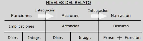 Los niveles del relato entonces que propone Barthes son tres: nivel de las funciones (sigue a Propp y Bremond), el nivel de las acciones (a Greimas, los personajes como actantes) y el nivel de la narración (nivel del «discurso» en Todorov).