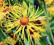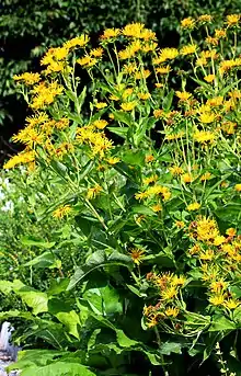 La elecampana, énula o helenio (Inula helenium) es una planta compuesta perenne común en muchos lugares de Gran Bretaña, y presente por todo el sur y el centro de Europa, así como en Asia hasta incluso en el Himalaya.