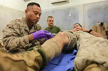 - Anestesiología. Se emplea la inyección intraarticular de anestésicos, como la bupivacaína, para cirugías, con la ventaja de que proporciona un mejor alivio del dolor, disminución del uso de opiáceos postoperatorios, náuseas y vómitos postoperatorios (NVPO) y tiempo en la sala de recuperación.[4]