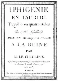Ifigenia en Táuride (título original en francés, Iphigénie en Tauride) es una ópera en cuatro actos con música de Christoph Willibald Gluck y libreto en francés de Nicolas-François Guillard.[3] Fue la quinta ópera de Gluck para los escenarios franceses.