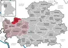 Se encuentra ubicado al oeste del estado, en la región de Franconia Media, a poca distancia al sur de la orilla del río Meno —un afluente derecho del Rin— y al este de la frontera con el estado de Baden-Wurtemberg.
