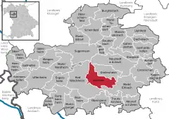 Se encuentra ubicado al oeste del estado, en la región de Franconia Media, a poca distancia al sur de la orilla del río Meno —un afluente derecho del Rin— y al este de la frontera con el estado de Baden-Wurtemberg.