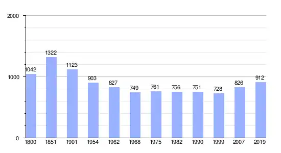 | Gráfica de evolución demográfica de Irissarry entre 1800 y 2019 |