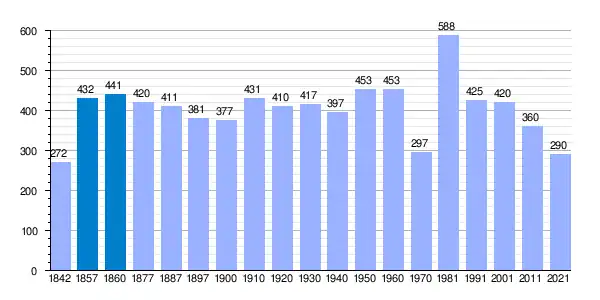 | Gráfica de evolución demográfica de Isar[5] entre 1842 y 2021 |