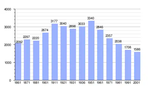 | Gráfica de evolución demográfica de Isca sullo Ionio entre 1861 y 2001 |