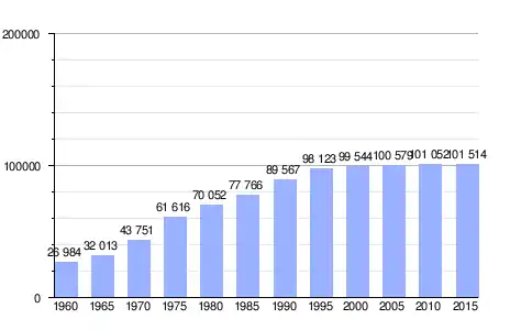 | Gráfica de evolución demográfica de Isehara entre 1960 y 2015 |