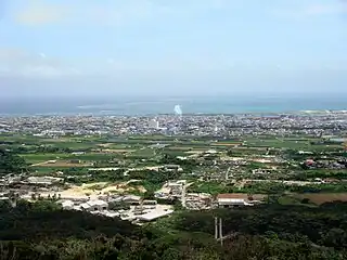 La ciudad está en la isla homónima que está rodeada por arrecifes de coral. El punto más alto en es el monte Omotodake de 526 metros.