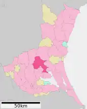 Su territorio limita al suroeste con Tsukuba; al sur con Tsuchiura y Kasumigaura; al este con Omitama; al norte con Kasama, y al noroeste con Sakuragawa.