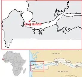 Isla Dog (en inglés: Dog Island,[1] literalmente Isla del Perro) es una pequeña isla, situada a orillas del río Gambia, en la República de Gambia,[2] a unos 13 kilómetros de la desembocadura del río hasta el Océano Atlántico. La superficie de la isla es inferior a 3,5 hectáreas. Durante la marea baja la isla está conectada con el continente, pero durante la marea alta está separada por unos 150 metros de la orilla norte del río. La isla debe su nombre al sonido producido por los babuinos (primate también llamado Papio) que residen en la isla, que desde la distancia suenan como el ladrido de los perros. El primer europeo conocido en la isla fue Alvise Cadamosto, un capitán veneciano al servicio de la príncipe portugués Enrique el Navegante en 1456, que llamó a la isla Sant' Andrea, a causa de una miembro de la tripulación fallecida llamada "Andrea", que fue enterrada allí.