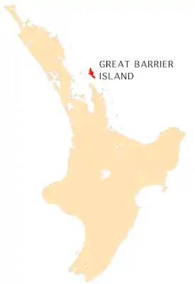 La isla Gran Barrera (Great Barrier Island) se encuentra ubicada a 88 km al noreste de Nueva Zelanda, frente al Golfo de Hauraki. Su nombre en maorí es Aotea, que significa nube blanca.
