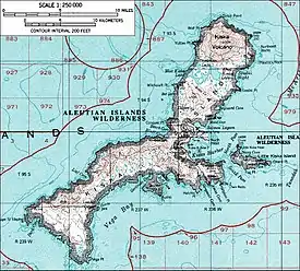 | Punto más alto | Volcán Kiska, 1.220 m | |
