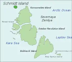 ![]() Isla Schmidt (ostrov Shmidta) Ubicación (Krai de Krasnoyarsk). | ||