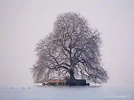 Fue creada artificialmente en 1797 por los residentes de Villeneuve a partir de una simple roca que emergia de las aguas del lago. El muro de contención ha sido reparado varias veces durante el siglo pasado y una casa de madera fue construida.