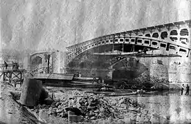 - Puente Saint-Michel en ruinas en 1875. Fondo Eugène Trutat, Archivos municipales de Toulouse