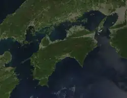 - Oeste: Cabo Sada (佐田岬 Sada-misaki?) en el Pueblo de Ikata de la Prefectura de Ehime, 033°20′35.00″N 132°00′53.00″E.