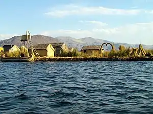 Las islas flotantes de los Uros son un conjunto de superficies artificiales habitables construidas de totora, una planta acuática que crece en la superficie del lago Titicaca. Las islas se yerguen sobre una porción de la superficie del lago Titicaca, se sobreponen a bloques de raíces de Totora sobre las cuales se tienden capas sucesivas de totora tejida o entrelazada en esteras. Sus habitantes, los uros, son un pueblo ancestral que actualmente se concentra en la meseta del Collao y en Perú en las islas flotantes ubicadas en la bahía de Puno.[1]