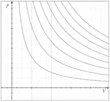Se denomina proceso isotérmico o proceso isotermo al cambio reversible en un sistema termodinámico, siendo en dicho cambio la temperatura constante en todo el sistema. La compresión o expansión de un gas ideal puede llevarse a cabo colocando el gas en contacto térmico con otro sistema de capacidad calorífica muy grande y a la misma temperatura que el gas. Este otro sistema se conoce como foco calórico. De esta manera, el calor se transfiere muy lentamente, permitiendo que el gas se expanda, realizando trabajo. Como la energía interna de un gas ideal solo depende de la temperatura y ésta permanece constante en la expansión isoterma, el calor tomado del foco es igual al trabajo realizado por el gas: Q = W. Una curva isoterma es una línea que sobre un diagrama representa los valores sucesivos de las diversas variables de un sistema en un proceso isotermo. Las isotermas de un gas ideal en un diagrama P-V, llamado diagrama de Clapeyron, son hipérbolas equiláteras, cuya ecuación es P•V = constante.[1][2]