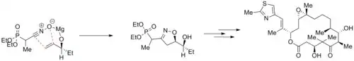 La síntesis de isoxazolinas 3,5-disustituídas ocurre a partir de cicloadiciones 1,3-dipolares de azúcares libres. Es uno de los métodos más importantes para la obtención de anillos heterocíclicos de cinco miembros. La síntesis no requiere condiciones enérgicas. Para aplicar estas cicloadiciones a la obtención de sistemas heterocíclicos nitrogenados-oxigenados, es necesario realizar la síntesis del dipolo óxido de nitrilo.[12]