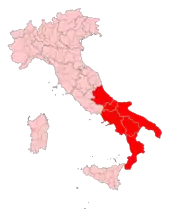 Italia Meridional es la parte sur de la península itálica y comprende las regiones de Abruzos, Molise, Campania, Apulia, Basilicata y Calabria. Por cuestiones geográficas, históricas y culturales, dentro del concepto de Italia meridional, o, en un sentido más amplio, de Mezzogiorno, es común incluir también la isla de Sicilia. Generalmente, las ciudades del sur son menos industrializadas que las del norte. Aunque geográficamente central, la región de Abruzos es considerada como meridional por cultura, economía y por haber sido parte integrante del Reino de Nápoles y del posterior Reino de las Dos Sicilias.