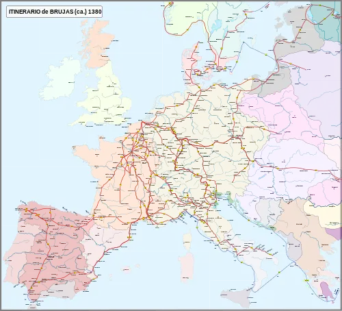 La obra denominada «Itinerario de Brujas» es una recopilación de rutas en Europa, norte de África y Oriente Próximo que fue escrita, probablemente, en la ciudad de Brujas sobre el año 1380.[1] Con el título de Via prima quae est diversorum locorum mundi distantia demonstrativa, fue uno de los primeros itinerarios europeos en publicarse tras las obras de época romana como el Itinerario de Antonino o el Anónimo de Rávena.[2] Se considera que, en su tiempo, era la descripción de caminos más amplia y completa que existía.[3]