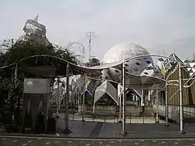 En torno a estas tres cúpulas, un parque con una vista del Monte Fuji, salpicada de sombrillas y adorna así el confort del usuario.