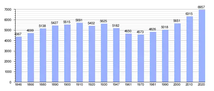Todos los datos históricos relativos al actual municipio, el siguiente gráfico refleja su evolución demográfica, incluyendo municipios después de efectuada la fusión el 1 de enero de 1977.