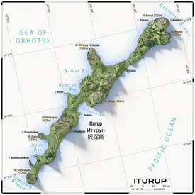 Iturup (en ruso: Итуруп, Ostrov Iturup;[1] en japonés: 択捉島, Etorofu-tō[2]) es la isla más grande del archipiélago de las Kuriles, con una superficie de 3.139 km². Al noreste se encuentra la isla Urup, separada por el estrecho de Vries, y al suroeste la isla Kunashir, separada por el estrecho de Ekaterina.