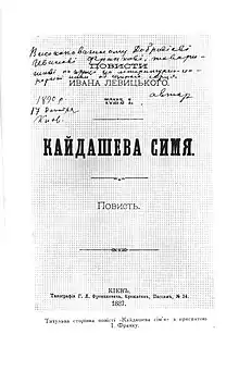 - Iefremov, Serhii. Nechui-Levyts'kyi (Kiev 1924)