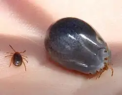 ![]() Ixodes holocyclus antes y después de alimentarse. | ||