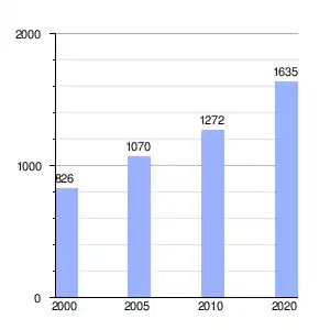 Cuenta con 1635 habitantes lo que representa un incremento promedio de 2.6% anual en el período 2010-2020 sobre la base de los 1272 habitantes registrados en el censo anterior. Ocupa una superficie de 0.4282 km², lo que determina al año 2020 una densidad de 3819 hab/km².[7]