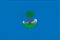 Bandera: La bandera trae sobre fondo rojo el escudo municipal centrado, quedando rodeado por el nombre del municipio con letras doradas