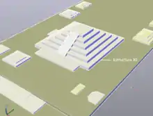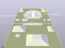 El complejo del templo principal sobre la base de un plan de diseño inicial se extendió 1km2, ninguna construcción era al azar. Diseñaron planes para el templo con diez plazas y más de 140 escultura de piedra usando geometría, medidas uniformes, astronomía y topografía en su diseño principal. En el centro se encuentra una gran pirámide que representa el cenit solar, su diseño geométrico se deriva de la naturaleza como puede verse al refractarse los rayos de luz del sol al amanecer del solsticio de invierno a través de una ventana entre tres estelas delante de un montículo.