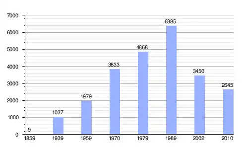 | Gráfica de evolución de Játanga entre 1859 y 2010 |