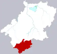 Se encuentra situada al sureste de la provincia, cerca del río Yangtsé y de la frontera con las provincias de Zhejiang y Jiangsu.