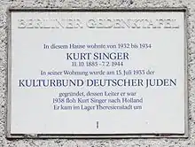 Placa conmemorativa de Berlín: Kurt Singer y la Jüdischer Kulturbund.