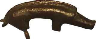 El jabalí está representado de manera estilizada: es sobre todo su larga melena la que permite identificarlo. La forma de las patas delanteras y traseras sugiere que originalmente fue montado en otro objeto, probablemente un casco. Los cascos decorados con figuras de jabalíes se mencionan varias veces en el poema Beowulf, y se han encontrado dos cascos de este tipo en Inglaterra: los de Benty Grange y Wollaston. En la cultura germánica, el jabalí es un animal simbólicamente importante, que juega un papel protector.