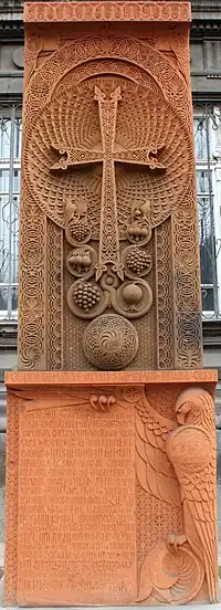 ![]() Jachkar moderno con simbología armenia tradicional en (Ereván). | |