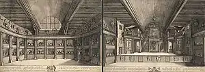 - Teatro de van Campen (1638), Ámsterdam, basado en el ejemplo del Teatro Olímpico de Vicenza.