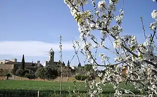 Está situado al norte de la comarca, en la orilla izquierda del río Ter.