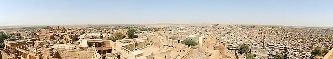 Jaysalmer (en hindi: जैसलमेर), apodada como "La Ciudad Dorada", es una ciudad en el estado indio del Rajastán. Durante un tiempo existió el estado de Jaisalmer. La ciudad está situada en la cresta de una roca arenosa de color amarillento y está coronada por el Fuerte de Jaisalmer que con 99 bastiones corona la colina de Trikuta [Tres Picos] de 80 metros de altitud. En el interior de dicho fuerte se encuentra el palacio Maharaja Mahal, siete templos jainas y dos hinduistas. Muchos de los templos y edificios están esculpidos con gran riqueza. La ciudad está situada en el desierto de Thar y tiene una población de alrededor de 78 000 habitantes. Es la capital administrativa del distrito de Jaisalmer. Jaisalmer recibe su nombre a partir de su fundador Rao Jaisal.[2] Jaisalmer significa "El fuerte en la colina de Jaisal". Frecuentemente Jaisalmer es llamada "La Ciudad Dorada" por el color dorado que le confiere la arena amarilla tanto a la ciudad como a sus alrededores.