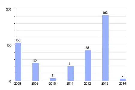 | Gráfica de evolución de la deuda viva del ayuntamiento entre 2008 y 2014 |