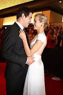 ![]() James Stewart junto a su exnovia Jessica Marais durante la entrega de los premios Logie en 2011. | ||