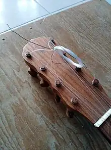 Detalle de la cabeza de una Jarana jarocha actual. Se notan las clavijas.